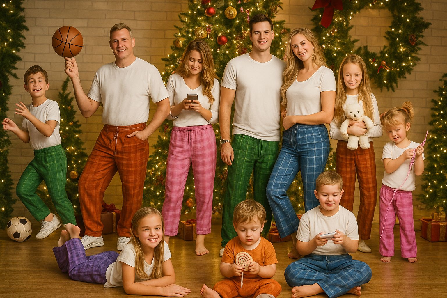 ✨ Mix prints with purpose — combine solid colors with coordinating holiday plaids, stripes, or novelty prints for a designer-style family set.