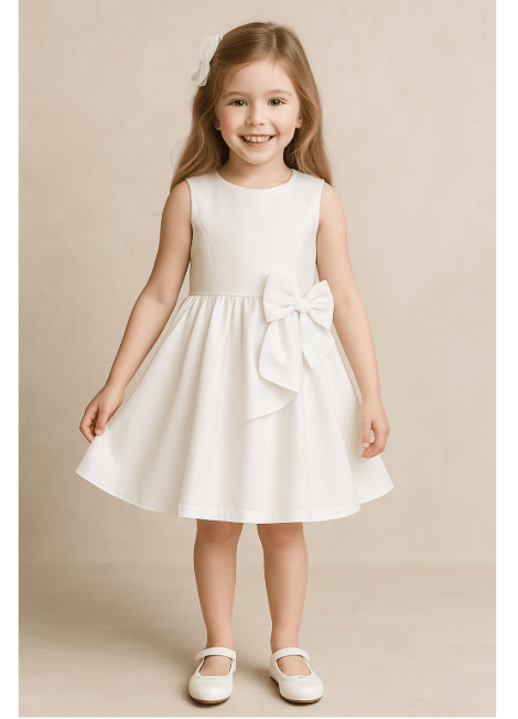Think vintage-inspired charm blended with modern comfort: a clean, classic bodice, a soft twirl-ready skirt, and a signature oversized bow that gives the design its unforgettable silhouette. It’s the kind of dress you see in boutique holiday style books—the ones that always feel elegant, timeless, and impossibly sweet.
