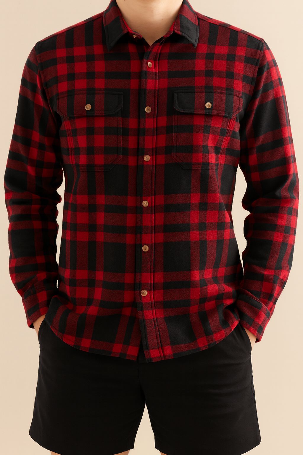 • For men between sizes: Go up one size—holiday plaids and flannels look best with a touch of ease.