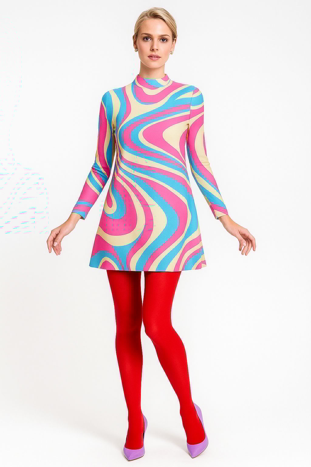 🎀 Playful Retro: Go shorter on the hem, choose mustard or geometric prints, and finish with white boots or a headband for a full-on ‘60s nod.